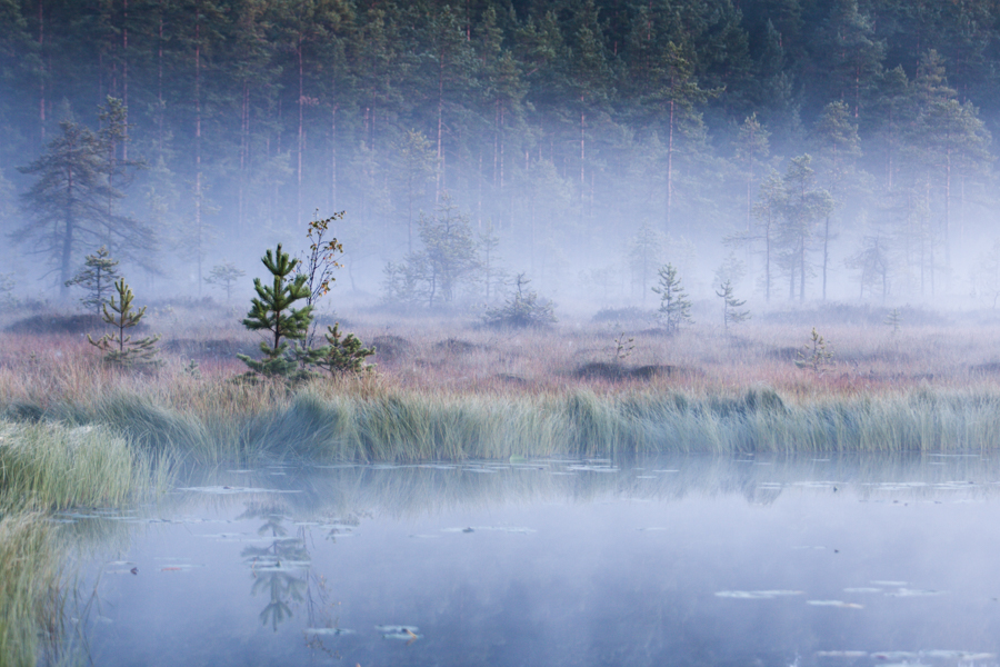 Usvainen suomaisema. Tämä on itselle tärkeä paikka nimeltään Pöyryssuo. Siellä on monta aamua tullut vietettyä jo monta hyvää kuvaakin tullut otettua. Tässä on elokuinen suomalainen suo parhaimmillaan juuri ennen auringon nousua.